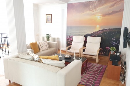 Ima 4 spavaće sobe, jedna ima dva singl kreveta, druga ima bračni i singl krevet, a ostale dve sobe imaju bračni krevet. Dnevna soba ima garnituru koja se razvlači i dva kauča. Kuhinja je kompletno opremljena svim neophodnim a trpezarija je izdvojena. Stan još ima i dva kupatila, jedno je opremljeno tuš kabinom, drugo kadom.
