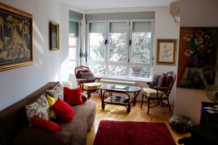 Apartmani u Beogradu- Apartman na dan Dušanovac se nalazi u Cankarevoj ulici na Dusanovcu. Stan je na prvom spratu stambene zgrade i predvidjen je za prijatan boravak do 3 osobe. U svom sadržaju, apartman na dan Dušanovac ima dnevnu sobu sa trpezarijom i kuhinjom, odvojenu spavaću sobu sa terasom i kupatilo. Nalazi se u mirnom i prelepom beogradskom naselju, odakle je linijama gradskog prevoza savršeno povezan linijama gradskog prevoza. Što se tiče dodatnog sadržaja, na raspolaganju su veš mašina, fen za kosu, etažno grejanje, klima uredjaj, LCD Tv, wifi, kao i čisti peškiri i posteljina. Ako želite mir i tišinu ovo je idealno mesto za vas. Ukoliko dolazite sopstvenim autom na raspolaganju je parking ispred objekta u kome se nalazi apartman, ali mesto nije rezervisano! Dobrodošli!