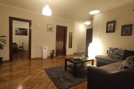 Apartman Lucic Big - Krnjača. Dvosoban apartman se nalazi na drugom spratu na adresu: Zage Malivuk, 19r u Krnjači. Po strukturi je dvosoban i površine je od 55m2. Apartman je namenjen za udoban i komforan boravak do 4 osobe. Sastoji se od jedne spavaće sobe koja poseduje bračni krevet, dnevnog boravka sa ugaonom garniturom na razvlačenje gde takodje mogu prespavati 2 osobe, kompletno opremljene kuhinje sa šporetom, rernom, tosterom, ketlerom, kombinovanim friziderom i naravno svim potrebnim escajgom. Kupatilo sa tuš kabinom. Pored toga, apartman poseduje i terasu sa baštenskim nameštajom na kojoj se može uživati. Gostima je na raspolaganju besplatan WiFi internet, flat-screen TV sa kablavskim kanalima, čisti peškiri i čista posteljina, klima uredjaj, tea peć i norveški radijator. Za sve one koji dolaze sopstvenim vozilom imate obezbedjen privatan besplatan parking ispred zgrade gde se nalazi apartman. Dobrodošli!