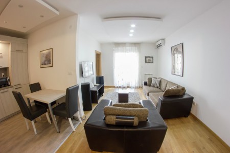 Apartmani Beograd - Apartman Maya je lociran u Bistričkoj ulici, na Paliluli. Apartman se nalazi u visokom prizemlju nove stambene zgrade sa liftom. Prostire se na 43 m2 i može da ugosti do 2 osobe. Sastoji se od dnevnog boravka sa kuhinjom, spavaće sobe i kupatila. U dnevnom boravku se nalazi dvosed i fotelja sa kuhinjom koja je potpuno opremljena svim malim kućnim aparatima i trpezarijskim stolom. Spavaća soba je veoma prostrana i u njoj se nalazi veliki, udoban bračni krevet. Kupatilo poseduje tuš kabinu i opremljeno je modernim i novim sanitarijama. Stan je potpuno nov, svetao i kompletno opremljen. Od propratnog sadržaja stan poseduje : LCD TV, KTV, Wifi, CG, klima uređaj, veš mašinu, klima uređaj, posteljinu i peškire. Stan na dan se nalazi na odličnoj lokaciji u mirnoj ulici, u neposrednoj blizini mnogih kafića, restorana, prodavnica, hotela Zira. Ukoliko dolazite automobilom obezbeđeno je garažno mesto u sklopu zgrade gde se nalazi apartman i ulazi u cenu apartmana.