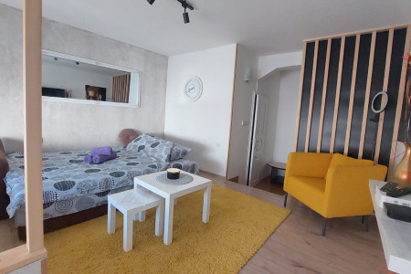 Apartmani u Beogradu- Apartman Muhar se prostire na 46m2 na dva nivoa, u donjem delu je kuhinja i manji dnevnik boravak sa wc-om, na gornjem nivou je spavaća soba sa kupatilom. Nalazi se u samom centru Zemuna u Dobanovačkoj ulici, u prizemlju kuće sa zasebnim ulazom sa ulice. Apartman je kompletno namešten, opremljen kako za kraći tako i za duži boravak. Namenjen je za 2 osobe ali je moguće da se smeste i 3 osobe ukoliko gostima odgovara manji ležaj u donjem delu. Od pratećeg sadržaja poseduje dve klime, 2 tv-a, KATV, wifi, čiste peškire i posteljinu. Funkcionalan za boravak najviše tri osobe, nije pogodan za malu decu. U blizini se nalazi kula Gardoš, kej, veliki broj restorana, kafića, marketa. Linijama gradskog prevoza odlično je povezan sa ostalim delovima grada. Dobro došli!