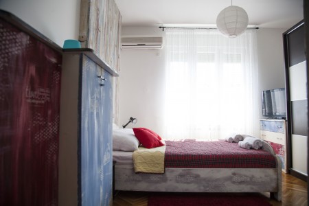 Apartman u Beogradu - Apartman Panorama se nalazi u ulici Majke Jevrosime, na 200 metara od Skupštine Srbije, na pet minuta šetnje do glavnog trga. Savršena lokacija za obilazak Beograda. Apartman se nalazi u stambenoj zgradi koja ima prelepo dvorište. Noći su mirne i tihe. Smešten je na sedmom spratu zgrade sa liftom. Stan je potpuno opremljen za prijatan boravak do četiri osobe. Poseduje lepo uređen dnevni boravak u kojem se nalazi garnitura na razvlačenje, odvojenu spavaću sobu sa udobnim bračnim krevetom, kuhinju sa trpezarijom, kupatilo sa tuš kadom. Prateći sadržaj u apartmanu čine etažno grejanje, klima uređaj, TV, kablovski kanali, WiFi, mikrotalasna, ketler, mašina za sudove, pegla, fen, veš mašina, osnovna kozmetika, peškiri i posteljina. Apartman Panorama je lociran u blizini Terazija, Crkve Svetog Marka, nedaleko je Skadarlija, Trg Republike. Mnoštvo kafića, restorana, prodavnica nalazi se u blizini apartmana. MINIMUM DANA za zakup je 2 dana.