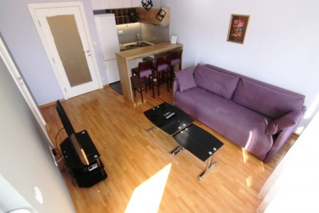 Apartmani u Beogradu - Apartman Podgora je dvosoban stan na dan, na petom spratu u novoizgradjenom naselju Savada na Novom Beogradu. Apartman ima 36m2 površine i sastoji se od dnevne i spavaće sobe, kuhinje, kupatila, predsoblja i terase. U dnevnoj sobi dominira trosed na razvlačenje, koji se po potrebi razvlači i pretvara u ležaj za dvoje. Trpezarijski deo se nastavlja na dnevnu boravak i u njemu je barski sto za ručavanje sa 4 barske stolice. Kuhinja nije većih dimenzija, ali poseduje sve sto treba i vrlo je funkcionalna. U predsoblju je veliki plakar gde komotno možete odloziti vaše stvari. Iz dnevne sobe se ulazi u spavaću sobu. U njoj se nalazi veliki bračni krevet i plakar. Kupatilo je opremljeno klasičnom kadom i veš mašinom. Dodatni sadržaj čine klima, centralno grejanje, LCD tv, wifi, čista posteljina i peškiri. Ima odličnu saobraćajnu konekciju sa ostalim delovima grada i to čini lokaciju apartmana vrlo dobrom. Apartman Podgora poseduje sopstveni parking koji je uračunat u cenu.