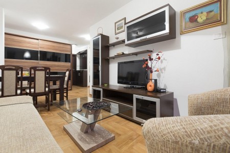 Apartman u Beogradu - Apartman Sedmica se nalazi u ulici Stjepana Ljubiše, u blizini Vukovog spomenika, na samo 1.5km od Trga Republike, 2km od samog centra grada i 1km udaljenosti od Muzeja Nikole Tesle. Smešten je na drugom spratu zgrade sa liftom. Apartman poseduje dnevnu sobu sa garniturom na razvlačenje, odvojenu spavaću sobu sa bračnim krevetom, kupatilo, balkon i kuhinju. Kapaciteta je do 4 osobe. Modernog enterijera i jako funkcionalan i za duži period. Dodatni sadržaj čine centralno grejanje, klima, TV, kablovska tv, wifi, mašina za sudove, fen, pegla, veš mašina, posteljina i peškiri. Na samo 50m od apartmana se nalazi Zira Shopping centar sa Vero marketom, koji je ujedno i najbliži market. Na istoj lokaciji se nalazi najbliži bankomat, stanica gradskog prevoza, linije koje vode direktno do centra grada, preko Bulevara kralja Aleksandra. Na raspolaganju je garažno mesto na upit, u zgradi uz doplatu 5 eura dan ili možete koristiti besplatan parking u krugu zgrade ali mesto nije rezervisano. Ovaj apartman vikendom možete iznajmiti na MINIMUM DVA DANA