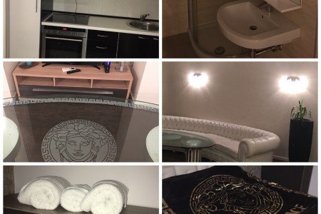 Beograd Apartmani – Apartman Versus je luksuzni apartman na Novom Beogradu u ulici Uroša Martinovića, a nalazi se u novom modernom naselju Blok A, praktično na uglu sa prometnom ulicom Omladinskih brigada. Nalazi se na prvom spratu zgrade sa liftom. Uz vrhunski komfor i ekstravaganciju, ovaj apartman se bez preterivanja može nazvati spektakularnim. Već dnevna soba donosi nekoliko prizora koji se retko gde mogu videti: raskošna polukružna garnitura asocira na ambijent prestižnog noćnog kluba ili penthaus hotela A kategorije. Pritom, ovaj ležaj može poslužiti kao prenoćište za dve odrasle osobe, ukoliko se ukaže potreba. Odmah pored je stakleni stolić posađen na masivne dekorisane stupove, a sa strane velika žardinjera sa lisnatom biljkom. Posebno ističemo eleganciju tapetnih dezena, plafonsku borduru i nekoliko taktički raspoređenih plafonjera. Pregradni zid nam sa jedne strane prezentuje ogoljenu ciglastu teksturu i kompozitnu policu, a sa suprotne strane razotkriva sjajno opremljenu kuhinju. Ovde primećujemo krupne pločice i efektnu crno-belu kombinaciju furnira na elementima. Na raspolaganju su priručni predmeti poput aparata za kafu, te frižider i štednjak najnovije generacije. Kada je reč o spavaćoj sobi, uzbuđenja tek počinju. Naime, prostrani francuski ležaj sa zlatno-crnim satenskim prekrivačem izaziva bezmalo faraonski osećaj. Soba je osvežena sobnom biljkom i sedefastom bojom pobočnog zida, a praktično dopunjena komodom i klasičnim čivilukom. U kupatilu se sve cakli, počevši od prvoklasne keramike i sanitarija, do besprekorno čiste tuš kabine. Na raspolaganju su bojler, veš mašina, grejna rešetka i rolne svežih peškira. Pogled sa balkona približava atmosferu naselja i uzbuđenje zbog novih blokova zgrada koje upravo niču. Na raspolaganju je Wifi, klima, TV, kablovska, centralno grejanje, posteljina, peškiri. Ukoliko tražite apartman u novoj zgradi, bolju opciju od predmetne teško ćete pronaći. Poslovni centar Airport City na deset minuta pešice, dok je Delta City na svega dvesta metara od zgrade. Na petnaest minuta hoda kroz susedne blokove je Savski kej sa pregršt zanimljivih sadržaja. S obzirom da je ovo apartman sa garažom, brige oko parkiranja i čuvanja automobila su rešene. Za kretanje prema drugim delovima prestonice na raspolaganju je više linija autobusa i tramvaja koji staju u blizini zgrade. Kao unikatan smeštaj za dvoje ili porodicu sa decom, apartman Versus je čista ekskluziva. Postoji mogućnost da se obezbedi dečiji krevetac i hranilica za bebe. Za decu do 7 godina je smeštaj besplatan.
