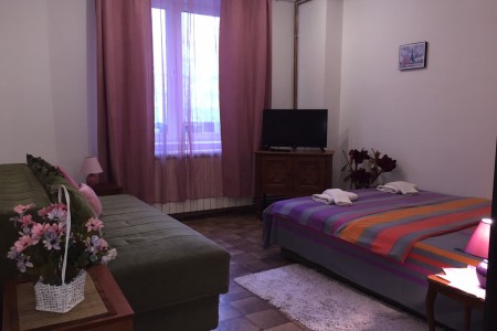 Apartmani Beograd - Apartman Garden Hram se nalazi u ulici Patrijarha Varnave, na Vračaru. Stan je smešten u prizemlju zgrade bez lifta. Po strukturi je jednosoban i može da ugosti do 4 osobe. Apartman se sastoji od jedne prostorije gde je spavaći deo izdvojen pregradnim zidom, tu je veliki bračni krevet i trosed na razvlačenje, u drugom delu nalazi se kuhinja sa trpezarijom. Kuhinja je opremljena, šporetom, frižiderom, ketlerom i svim neophodnim kako bi bila pogodna i za duže boravke. Kupatilo je opremljeno tuš kabinom i veš mašinom.