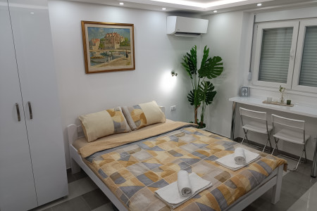 Apartman Grey 4 nalazi se u samom centru grada, u Crnogorskoj ulici na Zelenom vencu. Lokacija apartmana je takva da do svih najznačajnih delova grada stižete pešaka. Glavno autobusko stajalište se nalazi na 300m od apartmana. U ovom malom apartmanu, koji je smešten u prizemlju zgrade, možete naći sve sto vam je neophodno za duži ili kraći boravak. U centralnom delu apartmana nalazi se veliki bračni krevet na kome mogu spavati dve osobe. U kuhinji koja je opremljena kompletnim priborom za ručavanje se nalaze jos frižider, veš mašina, kao i indukciona ploča za kuvanje. Kupatilo je opremljeno novim sanitarijama i tuš kabinom. Apartman je renoviran. Grejanje i hlađenje je preko inverter kvalitetne klime. U apartmanu su obezbeđeni TV sa kablovskim kanalima i besplatan Wi-Fi internet. Moguce je lično od vlasnika preuzeti ključ u periodu od 14h do 16h na dan dolaska. Nakon ovog vremena moguće je preuzimanje ključa iz sefa (keybox-a) uz avansno plaćanje putem računa ili ostavljanja novca prilikom dolaska u postbox. Očekujemo Vas!