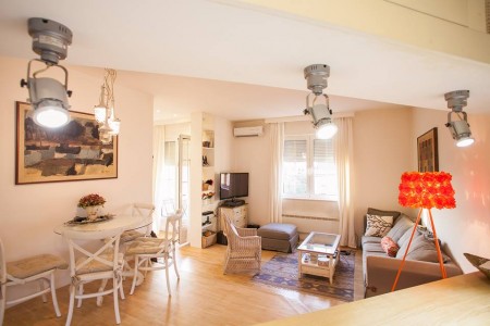 Apartman u Beogradu - Apartman Sasa lociran je na Vračaru u ulici Prote Mateje. Nalazi se na 4 spratu zgrade koja poseduje lift. Stan na dan potpuno je opremljen za boravak do 3 osobe. Poseduje dnevnu sobu u sklopu koje se nalazi i potpuno opremljena kuhinja sa šankom, delimično odvojenu spavaću sobu, kupatilo sa tuš kabinom i terasu. Apartman je svetao, izuzetno prijatnog ambijenta. Na raspolaganju su grejanje (norveški radijatori), klima, Wifi, TV, ktv, ketler, mikrotalasna, mašina za sudove, fen, pegla, posteljina, peškiri i veš mašina. Apartman Sasa nalazi se u blizini Trga Slavija, muzeja Nikole Tesle, nedaleko je Hram Svetog Save, kao i brojne prodavnice, kafići, restorani. Gostima je na raspolaganju besplatno garažno mesto NA UPIT, na oko 200m od apartmana. Ovaj apartman možete iznajmiti na MINIMUM DVA DANA.