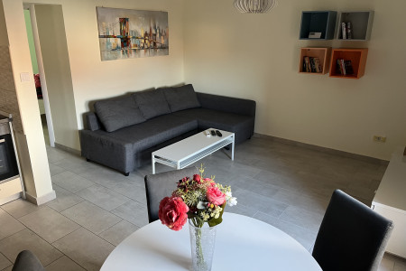 Apartmani u Beogradu- Apartman na dan Severac se nalazi u mirnom delu grada. Smešten je na drugom spratu stambene zgrade. Predvidjen je za prijatan boravak do 4 osobe. Poseduje dve terase, klimu, podno grejanje, kablovsku, internet, opremljen je novim nameštajem i tehnikom. Stan je dvostrano orijetisan dosta je svetao, moderno je dizajniran i funkcionalan. Sastoji se od dnevnog boravka sa garniturom, zasebne spavaće sobe sa krevetom na rasklapanje, kompletno opremljene kuhinje i kupatila sa tuš kabinom. Čisti peškiri i posteljina se podrazumevaju. Lokacija je odlično povezana sa ostalim delovima grada linijama gradskog prevoza. Ukoliko dolazite sopstvenim autom, na raspolaganju je parking ispred objekta uz doplatu od 10e po danu. Apartman takođe nudi mogucnost prevoza do aerodroma uz doplatu od 25e. Severac je potpuno opremljeni stan na dan, idealan kako za kraće tako i za duže boravke. Dobrodošli.