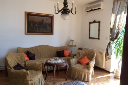 Apartman sadrži dve spavaće sobe, dve dnevne sobe, trpezariju, kuhinju i kupatilo. Jedna dnevna soba ima bracni krevet (150x200), garderober i komoda i noćni stočići. Druga spavaća soba ima solo krevet (100x190) za jednu osobu, garderober, komoda i pisaći sto. Za sve goste je obezbedjena posteljina kao i čisti peškiri. Jedna dnevna soba je sa francuskim balkonom, garniturom za sedenje, bibliotekom i uredjenim enterijerom sa slikama i ogledalima. Druga dnevna soba je sa garniturom za sedenje, na kojoj takodje ima mesta za jednu osobu da se smesti, televizorom i muzičkim stubom. Kuhinja je odvojena barom i barskim stolicama od trpezarije, sa kombinovanim frižiderom, šporetom, mikrotalasnom, aparatom za filter kafu i potpuno je opremljena sudovima, escajgom. Kupatilo je opremljeno sa svom potrebnom sanitarijom, kao i mašinom za pranje veša. U stanu je etažno grejanje na struju, wifi dostupan u svim prostorijama apartmana, klima i kablovska.