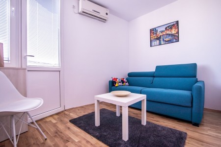 Apartmani u Beogradu- Apartman Angle Studio je moderan studio u samom centru grada, u Dubrovačkoj ulici. Lociran samo par minuta laganog hoda do Trga Republike i centra grada. Smešten je na 12om spratu zgrade sa liftom. U apartmanu Angle Studio komotno mogu boraviti do 2 osobe. Stan na dan je moderno uredje, funkcionalan i svetao. Sastoji se od prostorije u kojoj se nalazi udobna garnitura na razvlačenje, opremljena kuhinja, kupatilo sa tuš kabinom, tako da imate sve neophodno kako za kraće tako i za duže boravke. Angle Studio je nov i kompletno opremljen stan na danDodatni sadržaj u apartmanu čine LCD TV, Wi Fi, plakari za odlaganje stvari, sto i stolice za ručavanje, veš mašina, pegla, kao i klima i centralno grejanje. U blizini se nalazi veliki broj kafića i restorana, kao i supermarketa, butika, apoteka. Ukoliko tražite idealan smeštaj u Beogradu za 2 osobe, apartman na dan Angle Studio je savršen izbor!