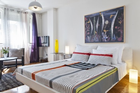 Apartmani Beograd - Apartman Rakoč 13 nalazi se u ulici Cara Uroša, na Dorćolu, u centru Beograda. U pitanju je studio apartman koji se prostire na 35 m2 i može da ugosti do 2 osobe. Nalazi se na 6 spratu zgrade sa liftom. Sastoji se od sobe u kojoj se nalazi veliki i udoban bračni krevet i stočić za kafu i dve fotelje. Male kuhinje koja je opremljena sa frižiderom i ugradnom pločom i stolom i stolicama za ručavanje. Kupatilo je opremljeno sa tuš kabinom i veš mašinom i modernim sanitarijama. Od propratnog sadržaja stan na dan poseduje: LCD tv, klima uredjaj, WiFI, centralno grejanje, kao i čisti peškiri i posteljina, veš mašinu.