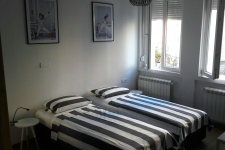 Beograd Apartmani - Apartman Studio M je udoban, moderno dizajniran i kvalitetno opremljen apartman u strogom centru Starog grada. Studio je u potpunosti renoviran u avgustu 2017.godine, sa svim potrebnim sadržajem koji je dovoljan čak i za duži boravak u njemu. Namenjen je za jednog ili dva gosta, koji dolaze iz turističkih ili poslovnih razloga. Nalazi se u prelepoj kaldrmisanoj ulici Kosančićev venac, od koje se za svega par minuta stiže do Knez Mihajlove ulice, Kalemegdanskog parka, Saborne crkve, Brankovog mosta, ali i Savamale i Savske promenade. Studio M ima površinu od 28m2 i nalazi se na trećem spratu zgrade sa liftom. Prostor je osmišljen kao jedna celina koja se sastoji od: kuhinje, trpezarijskog i spavaćeg dela, koji su vizuelno podeljeni, kao i zasebnog kupatila. Kuhinja je kompletno opremljena i poseduje: šporet, rernu, aspirator, frižider, kuvalo za vodu, kao i svo potrebno posuđe. Takođe, gostima su na raspolaganju kafe i čajevi, prema izboru. Trpezarijski deo ima sto i četiri stolice, prostor koji je osmišljen za uživanje u obrocima, ali isto tako može biti korišten i kao radni prostor. U nastavku prostorije, vizuelno odvojen, je spavaći deo koga čine dva odvojena (prava) kreveta (koji se po potrebi mogu spojiti) sa prvoklasnim dušecima sa memorijskom penom, natkasnama i pamučnom posteljinom i prostranim ormarom. Postoji i izdvojen, ugodan kutak sa dve fotelje, klub stolom i lampom, predviđen za uživanje u kafi, čitanje ili gledanje TV -a (LCD TV, kablovska televizija, bežični super brzi internet). Studio M ima centralno grejanje, kao i klimu. Kupatilo površine 5m2 sa okruglim prozorom i zanimljivim podnim pločicama daje poseban ugođaj. Opremljeno je tuš kabinom i kvalitetnim tušem, veš mašinom, fenom, kao i osnovnom kozmetikom (sapuni, šamponi, pasta za zube, toalet papir, deterdžent, sredstvima za čišćenje..). Peškiri su na raspolaganju, kao i pegla. Apartman Studio M je opreman sa mnogo ljubavi i pažnje o svakom detalju, tako da će svi oni koji znaju da uživaju u malim stvarima biti više nego zadovoljni. U prizemlju zgrade se nalazi pekara, dva supermarketa preko puta ulice, a mnoštvo kafića, restorana i kulturnih spomenika u neposrednom okruženju. Do novobeogradske strane i parka Ušće (kao i tržnog centra) se stiže za 15 minuta hoda preko Brankovog mosta, koliko je potrebno i do glavne železničke i autobuske stanice. Od aerodroma se stiže za pola sata vožnje taksijem. Parking nije obezbeđen, ali se u neposrednoj blizini nalazi javna garaža Obilićev venac, na 5min hoda od stana u kojoj je moguće kupiti dnevnu parking kartu (oko 12 EUR). Za ovaj apartman minimalni zakup je DVA DANA.