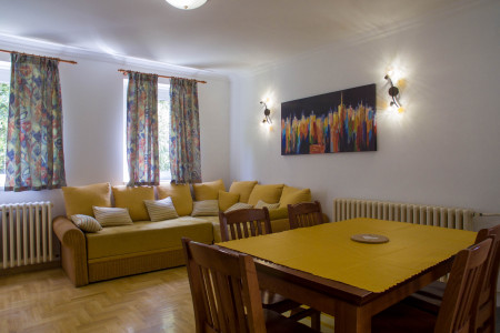 Apartman ABA je prostrani apartman koji se nalazi na Bežanijskoj kosi na Novom Beogradu. Smešten je u prizemlju zagrade, poseduje terasu sa pogledom na vrt i potpuno je opremljen za prijatan boravak do 5 osoba. Po strukturi je trosoban, poseduje dve odvojene spavaće sobe, dnevni boravak, opremljenu kuhinju i dva kupatila. Spavaće sobe su opremljene udobnim king size krevetima dok dnevni boravak poseduje garnituru na razvlačenje. Kuhinja je sklopu dnevnog boravka, opremljena mašinom za pranje sudova, rernom i delom za ručavanje. Oba kupatila poseduju tuš kabinu. Od dodatnih sadržaja gostima je na raspolaganju wifi, kablovski kanali, klima uređaj, peškiri i posteljina. Apartman ABA je moderan i funkcionalan, nalazi se na 5 km od Beogradske arene i 8,6 km od Ade Ciganlije i oko 8 km od Aerodroma Nikola Tesla. Posebna pogodnost apartmana je dečije igralište. Gosti koji dolaze sopstvenim automobilom mogu besplatno parkirati vozilo ispred zgrade, ali mesto nije rezervisano. Dobrodošli!