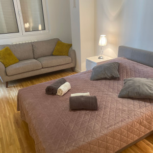 Lep, moderan , kvalitetan lux stan u lux zgradi, sa portirom i garažom sa video nadzorom. Sastoji se iz hodnika, dnevne sobe u kojoj je prelepa plafa sofa i fotelja, moderne kuhinje sa trpezarijskim stolom i stolicama. Na raspolaganju je i jedna spavaća prostrana soba sa francuskim krevetom i sofom, druga spavaca soba sa kvalitetnim krevetom na rasklapanje. Kupatilo izuzetno kvalitetno uređeno. Posebnu pogodnost boravka u apartmanu Monca je terasa za odmor sa stolom i stolicama. Stan pogodan za porodice i duži boravak. Veoma dobra lokacija i atraktivna lokacija, gde se u okolini nalaze radnje, restorani blizina Bulevara kralja Aleksandra, pijace Đeram. Lokacijski je odlično povezan sa ostalim delovima grada linijama gradskog prevoza. Za goste koji dolaze svojim prevozom, na raspolaganju je garažno mesto 6e po danu.
