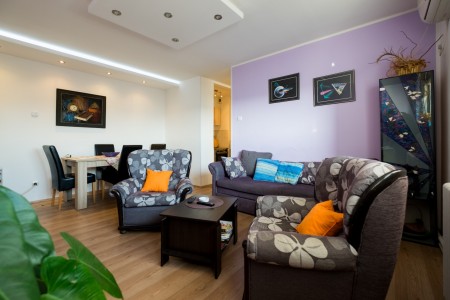 Beograd Apartmani – Apartman Sofy, nalazi se u ulici Kraljevića Marka, u centru Beograda. Smešten je na devetom spratu stambene zgrade sa liftom, površine 65m2. Stan na dan lociran je u blizini Brankovog mosta, Zelenog Venca, Trga Republike, autobuske i železničke stanice. Sastoji se od dnevne sobe, dve odvojene spavaće sobe, jedna ima dva singl kreveta, druga soba ima bračni ležaj, kompletno opremljene kuhinje i kupatila sa tuš kabinom. Sa balkona možete uživati u prelepom pogledu na grad, gde se nalazi i odeljenje za pušenje. Prateći sadržaj u apartmanu čine LCD tv, KTV, centralno grejanje, klima, WiFi, mikrotalasna, toster, pribor za peglanje, fen, posteljina, peškiri, veš mašina. Apartman Sofy lociran je u blizini brojnih marketa, kafića, klubova, splavova, pruža savršen smeštaj ukoliko želite da obiđete najaktuelnija mesta u gradu. Pogodan je za boravak 1-4 osobe.