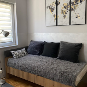 Apartman Juliet se nalazi u zavučenom, mirnom delu iza Hotela Seraton u Novom Sadu. Pogodan je za boravak maksimum 3 osobe. Apartman ima površinu od 40m2, i sastoji se od dnevnog boravka, odvojene spavaće sobe, kupatila i terase. Nalazi se na prvom spratu zgrade. Apartman poseduje sve što vam je potrebno bilo za kraći ili duži boravak u apartmanu. Kuhinja je opremljena za kraći i duži boravak.Kupatilo je takođe kompletno opremljeno, i sadrži kadu, veš mašinu, peškire. Gostima su na raspolaganju i internet, TV sa kablovskim kanalima, klima uređaj. Dodatna pogodnost ovog apartmana je terasa koju on poseduje. U samoj blizini apartmana nalaze se kafici i marketi, DM drogerija.