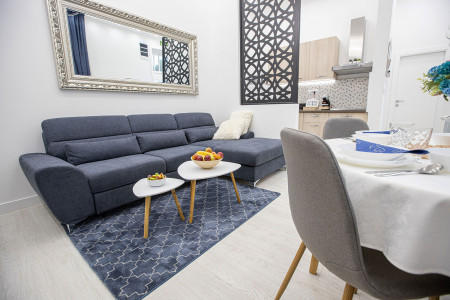 Theatre Square 2 je moderan dvosoban apartman u centru Novog Sada. Nalazi se na 50 metara od glavnog gradskog trga. Apartman ima spavaću sobu sa bračnim krevetom i dnevni boravak sa udobnom sofom koja se može razvući. Kuhinja je oprmeljena šopretom, mikrotalasnom, frižiderom i aparatom za kafu. Kupatilo je moderno, opremljeno tuš kabinom, fenom za kosu i peškirima. Gostima su na raspolaganju bade mantili, hotelske papuče i vrhunska posteljina. Apartman sadrži klima uredjaj, veliki LED TV sa preko 200 kablovskih kanala, kao i NETFLIX platformu. Apartman ima brzu WIFI mrezu, kao i sef za čuvanje vrednosti. Posebna pogodnost je mašinu za pranje i sušenje veša, kao i mašina za sudove. Za goste koji dolaze automobilom obezbeđen je privatni parking koji se nalazi uz objekat i ne naplaćuje se posebno.