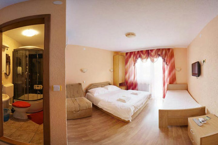 Kada su trokrevetne sobe u pitanju opremljene su sa francuskim ležajem, sigl krevetom i pomoćnim ležajevma, sa sopstvenim kupatilom i terasom i može da ugosti do 3 osobe.