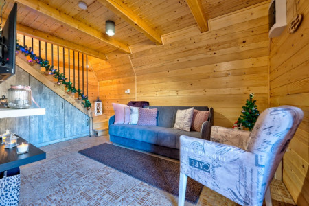 Brvnara Tara - Zlatibor. Luksuzna Brvnara Tara nalazi se na samo 5 kilometara od centra Zlatibora u naselji Smiljanski Zakosi. Ukoliko želite miran odmor sa porodicom, onda brvnara predstavlja idealan smeštaj. Površine je od 56m2 i predvidjen je za udoban boravak do 4 osobe. U prizemlju je smešten dnevni boravak sa udobnom garniturom koja se razvlači i koja je namenjena za udobno spavanje do 2 osobe, u nastavku se nalazi kompletno opremljena kuhinja. Brvnara je od prirodnih materijala u braon tonovima tako da ćete uživati u prijatnom ambijentu. Na spratu brvnare je smešten veliki bračni krevet i orman, a iz spavaće sobe se izlazi na terasu sa pogledom na prirodu koja okružuje brvnaru i ceo kompleks. Kupatilo koje je kompletno opremljeno sa novom sanitarijom i tuš kabinom. Svim gostima je na raspolaganju besplatan WiFi internet, TV sa kablovskim kanalima, čistu posteljinu i peškire kao i grejanje. Postoji i obezbeđeno parking mesto, za sve goste brvnare. Dobrodošli!
