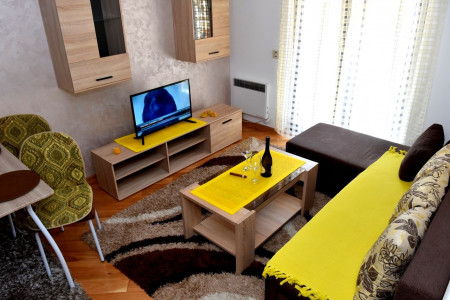 Stan na dan se sastoji od dnevne sobe u kojoj se nalazi ugaona garnitura na razvlačenje. U sklopu dnevne sobe nalazi se i čajna kuhinja kao i trpezarijski sto i stolice i iz dnevnog boravka se izlazi na terasu. Spavaća soba je opremljena udobnim bračnim krevetom i sa 2 toaletna stočića. U kupatilu su moderne sanitarije i tuš kabina.