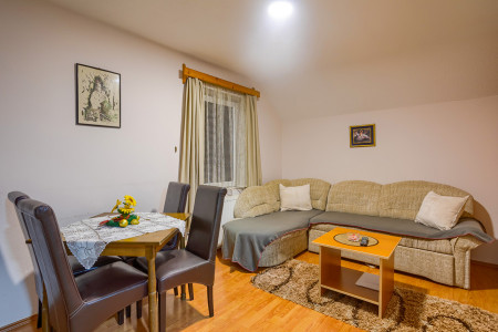 Sastoji se od dnevnog boravka sa ugaonom garniturom koja se rasklapa u udoban ležaj, u njegovom sklopu nalazi se kuhinja koja je opremljena za kraće i duže boravke i trpezarijski deo koji čine sto za ručavanje i stolice. Spavaća soba opremljena je sa velikim francuskim ležajem, dok je kupatilo opremljeno sa tuš kabinom. Iz spavaće sobe izlazi se na terasu sa prelepim pogledom koja ima sto i stolice za sedenje.