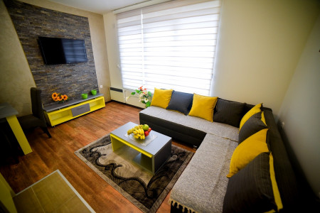 Stan na dan se sastoji od dnevne sobe u kojoj se nalazi ugaona garnitura na razvlačenje. U sklopu dnevne sobe nalazi se i kompletno opremljena kuhinja kao i trpezarijski sto i stolice i iz dnevnog boravka se izlazi na terasu. Spavaća soba je opremljena udobnim bračnim krevetom i velikim prostranim ormanom. U kupatilu su moderne sanitarije i tuš kabina.