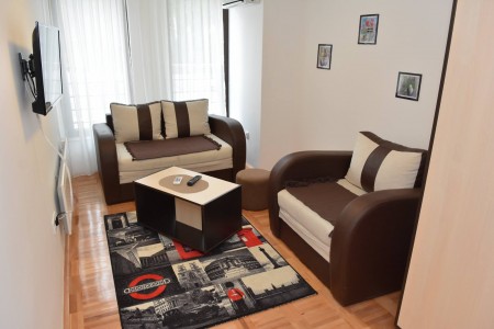 Apartmani Zlatibor- Apartman Zlatiborski Andjeo 1 nalazi se u sklopu kompleksa apartmana, nedaleko od centra i autobuske stanice. Kompleks raspolaže sa 18 moderno uredjenih apartmana, tako da su pogodni za veće grupe, porodice sa decom, ali i parove koji žele da uživaju u privatnosti i kućnoj atmosferi kojom odišu apartmani Zlatiborski Andjeo. Apartman Zlatiborski Andjeo 1 je namenjen za prijatan boravak do 4 osobe. Sastoji se od dnevnog boravka sa dvosedom i foteljom na razvlačenje, zatim zasebne spavaće sobe sa bračnim krevetom, potpuno opremljene kuhinje i trpezarijskog dela, kao i kupatila sa tuš kabinom. U apartmanu Vam je na raspolaganju sve neophodno kako za kraće, tako i za duže boravke. Za samo par minuta lagane šetnje možete stići do svih važnijih lokaliteta na Zlatiboru. Od dodatnog sadržaja, na raspolaganju su LCD tv, kablovska, wifi, čisti peškiri, posteljina, norveški radijatori. Ukoliko dolazite sopstvenim prevozom, parking mesto Vam je obezbedjeno! Dobrodošli!