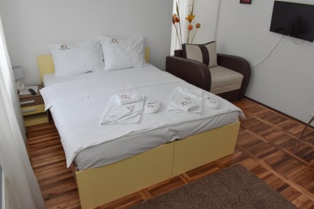 Apartmani Zlatibor- Apartman Zlatiborski Andjeo 10 nalazi se u sklopu kompleksa apartmana, nedaleko od centra i autobuske stanice. Kompleks raspolaže sa 18 moderno uredjenih apartmana, tako da su pogodni za veće grupe, porodice sa decom, ali i parove koji žele da uživaju u privatnosti i kućnoj atmosferi kojom odišu apartmani Zlatiborski Andjeo. Apartman Zlatiborski Andjeo 10 je namenjen za prijatan boravak do 3 osobe. Sastoji se prostorije u kojoj se nalazi bračni krevet i fotelja na razvlačenje (za treću osobu), potpuno opremljene kuhinje i trpezarijskog dela, kao i kupatila sa tuš kabinom. U apartmanu Vam je na raspolaganju sve neophodno kako za kraće, tako i za duže boravke. Za samo par minuta lagane šetnje možete stići do svih važnijih lokaliteta na Zlatiboru. Od dodatnog sadržaja, na raspolaganju su LCD tv, kablovska, wifi, čisti peškiri, posteljina, norveški radijatori. Apartman je komforan, funkcionalan i svetao. Dodatnu pogodnost predstavlja to što ukoliko dolazite sopstvenim prevozom, parking mesto Vam je obezbedjeno! Dobrodošli!