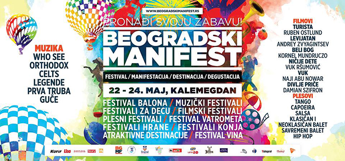 Naime, reč je o prvom velikom festivalu svih manifestacija, destinacija i degustacija. Beogradski Manifest je praznik najpoznatijih srpskih festivala pod pokroviteljstvom udruženja "Beogradski Manifest" i JP "Beogradska tvrdjava". Trajaće tri dana i biće smešten u Gornjem i Donjem gradu Beogradske tvrđave. Na ovom mestu će biti predstavljeno preko petnaest festivalskih celina od srpske kuhinje, turizma, plesa, filmske umetnosti, muzike, prirode i kreativnih ideja. Ono što možda najviše zanima sve koji nameravaju da posete ovaj festival je cena karte. Ulaz će biti veoma povoljan za svakoga, plaćaće se samo 250 dinara, od čega je 200 dinara vaučer za konzumaciju. Hranu za posetioce će pripremati mnogi proslavljeni kuvari sa raznih roštiljijada, gulašijada, pasuljijada pa sve do lokalnih tradicionalnih specijaliteta. Domaćini muzičkog dela festivala će biti naši najpoznatiji festivali kao što su: "Beer fest", "Zaječarska gitarijada", "Nišvil", "Love fest" i mnogi drugi. Što se tiče filmskog dela programa, domaćini će biti "Fest", "Palić film fest", "Festival dokumentarnog i kratkometražnog filma", "Cinema city" i "Kids fest". A posetioci će moći da uživaju u najostvarenijim filmskim izdanjima u bioskopu na otvorenom.