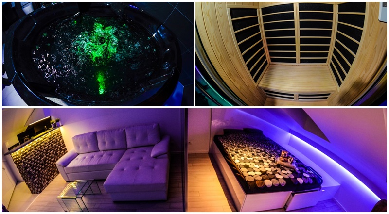 Apartman Play Spa nosi nezvaničnu titulu kralja medju spa apartmanima! Veoma prostran (107 kvm), idealno pozicioniran (Yu biznis centar, Novi Beograd) apartman Play Spa je predvidjen za udoban boravak do 4 osobe! A sada, da vas upoznamo sa sadržajem ovog nesvakidašnjeg apartmana! Play Spa u svom sadržaju ima parno (tursko) kupatilo, saunu i veliki, okrugao djakuzi! Pravo parče welness i spa raja. U spavaćoj sobi se nalazi prostrani francuski ležaj sa ogledalima na uzglavlju i na plafonu! Zaboravite na spa centre- sve što Vam je potrebno je noćenje u apartmanu na dan Play Spa. Podredite dan uživanju, posvetite dan sebi- Vaše telo će Vam biti zahvalno. Jedno je sigurno, boravak u apartmanu Play Spa pamtićete zauvek! Pa, šta čekate?