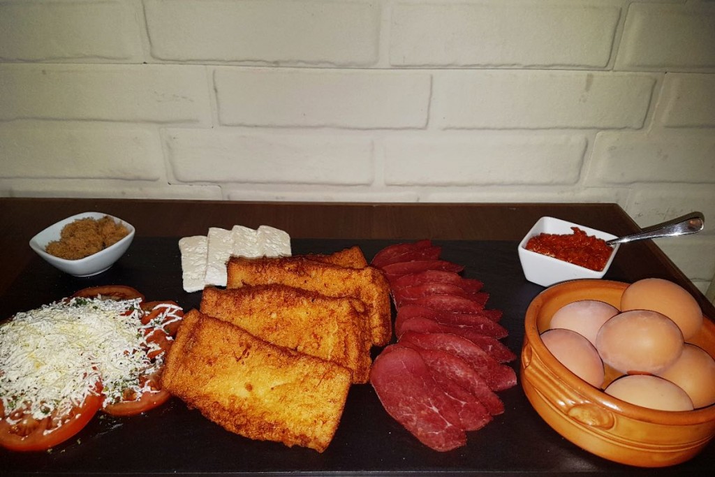 - SRPSKI DORUČAK (prženi jaje, uštipci, svinjska pršuta, kulen, viršla, kajmak, ajvar, kravlji sr, paradajz) --- 370