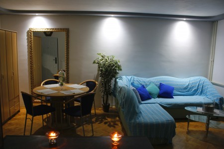 Daily rent apartment - Apartment Bash 3 is located in very quiet Maksima Gorkog street, nearby many restaurants, stores, parks and public transport as well. Saint Sava temple is a 10 minutes by light walk away. It is located on the first floor of a building that has no elevator. There are 2 parking places available, for 5 euros extra charge per day. Apartment Bash 3 is suitable to accommodate for up to 4 people. It consists of a living room with pull out sofa bed, then kitchen with dining area within the living room, sleeping area with a large double bed, bathroom with a shower. TV, wifi, cable tv, air condition, central heating, washing machine, clean bed sheets and towels are also available.