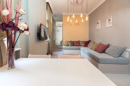 Apartment in Belgrade - Maya 3 apartment is located in the most beautiful location in central Belgrade, just a few steps away from National Assembly and Saint Marko church, as well as Tasmajdan park. This property is surrounded by many bars and restaurants. If you want to stay in city center, 600 meters from Republic square, but still be hidden from many touristic groups walking around, and experience local community, this is the place for you. For those who like parks and long walks you will find Tasmajdan park only 200 meters away, and within the park you'll find one of the best restaurants in Belgrade. This location is perfect to explore Belgrade by foot; all of the important sights like Kalemegdan fortress or Saint Sava Temple are in walking distance. This apartment in Belgrade is consisted of living room with fully a equipped kitchen and two single beds, bedroom facilitated with one double bed, and large bathroom with bathroom amenities. Apartment is on the high ground floor, in a beautiful pre-war building, renovated and furnished in January 2017. The apartment is 36 square meters large, with high sealing. Our guest can enjoy free Wi-Fi, flat screen tv with cable channels, the central heating system, fully equipped kitchen and a common terrace used only by guests from our tree apartments.