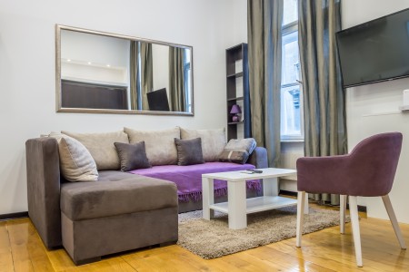 Apartments in Belgrade- Apartment Monument is located in Knez Mihailova street, in the very center of Belgrade! It is located on the first floor of a building that has an elevator and it is predicted to accommodate up to 4 people. By its structure- it is one bedroom apartment and it consists of a spacious room that contains pull out couch that can be bed for 2 people, double bed that can be pulled out from the wall and it is also for 2 people. There is also fully equipped kitchen and bathroom with a shower! Additional amenities are air condition, norwegian radiators, iron, hairdryer,LCD tv, catv, wifi, clean bed sheets and towels. This daily rent apartment is located nearby Kalemegdan fortress, bohemian quarter Skadarlija, Terazije and many others important locations. If you are coming with your own car, there is u public garage nearby. Welcome!