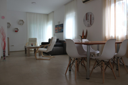 Apartmani u Beogradu - Vila My Garden nalazi se u mirnom naselju Surčin u ulici Surčinska 41. Vila My Garden može da ugosti 12 osoba. U svom sklopu poseduje dva identična apartmana od po 70 kvadratnih metara. Svaki apartman ima 2 spavaće sobe sa velikim bračnim krevetima 180x200, kupatilom, velikim dnevnim boravak sa trpezarijom i kompletno opremljenom kuhinjom. Vila My Garden je prostrana, veoma udobna i dobro osvetljena kuća. U svakom apartmanu može da boravi najviše 6 osoba, od toga 4 u spavaćim sobama, a 2 osobe na sofa krevetima u dnevnom boravku. Naša kuća se nalazi na dobroj lokaciji na samo 7 km od Beogeadskog Aerodroma. Bez mogućnosti saobraćajnih gužvi od i ka aerodromu. U svom sklopu poseduje dvorište koje će Vam pružiti potpun užitak. Dodatni sadržaj čine fen, pegla, wifi, centralno grejanje, klima uredjaj, LCD tv, čisti peškiri i posteljina. Ukoliko dolazite sopstvenim prevozom na raspolaganju su dva parking mesta unutar dvorišta i 3 parking mesta ispred kuće. U kući nije dozvoljeno organizovanje proslava i žurki, kuća se ne izdaje u te svrhe. Dobrodošli!