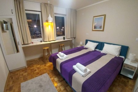 Apartments in Belgrade - Apartment Arena East A 2 is beautiful short rent studio close to the Arena, on Antifasisticke borbe street. This modern designed short rent apartment is suitable for up to 2 people and it is located on the second floor in the building with an elevator. There is possibility of extra bed on request - 5 eura extra pay for day. Apartment is brand new, adjusted to short and long stay and it consists of room with two beds and completely equipped kitchen and spacious bathroom with bathtub. Additional amenities in apartment are air conditioner, central heating, LCD tv, WiFi, clean linen and towels, and also free parking in front of the building (place is not reserved).
