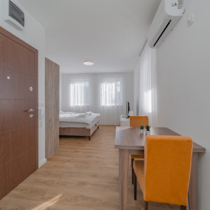 Apartments in Belgrade - Apartment Fashion 2 is located in Karaburma, near TC Big Fashion. It is located on the second floor of a residential building with an elevator and is intended for a comfortable stay of up to 2 people. It is modernly designed, functional and bright. It is a studio with a double bed for 2 people, a fully equipped kitchen with a dining table, which contains everything necessary for a short or long stay, as well as a bathroom with a shower. When it comes to additional content, air conditioning, Wi-Fi, clean towels, bed linen, hair dryer are at guests' disposal. A large number of city transport lines stop nearby, and for all guests who come with their own transport, free parking is available in front of the apartment for guests.