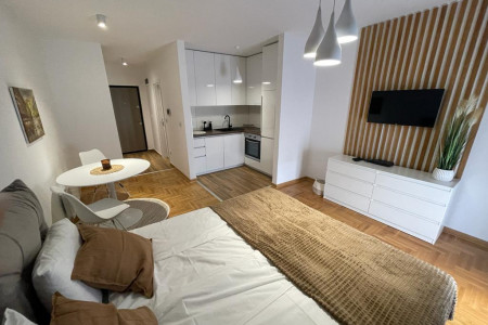 Apartment LL65 Airport - Surčin. The studio apartment is luxuriously furnished and is located in the immediate vicinity of the airport in the street: Majke Jugovića 2a. The apartment is located on the ground floor of a residential building, has an area of 32m2 and is intended for a comfortable stay for up to 2 people. The apartment has a comfortable double bed for 2 people, a fully equipped brand new kitchen with new elements and the necessary accessories and appliances, a modern bathroom with a shower cabin. Free WiFi internet, flat-screen TV with cable channels, clean bed linen and clean towels are at guests' disposal. It's great for those who need accommodation close to the airport. For all those who come with their own vehicle, the apartment has free parking in front of the apartment building. Welcome!