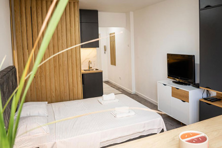 Apartment in Belgrade - Apartment Žad 2 is located in the street 27. marta, above the cafe Izlog, near the center, Tasmajdan Park, in an attractive location, on the second floor of a building with an elevator. The area of the apartment is 27m2, provides a perfect opportunity to relax in a pleasant environment for 2 people. The apartment is a studio with a room with a double bed, the kitchen is fully equipped, while the bathroom has a shower. The apartment has central heating, wifi, TV, bed linen, towels are provided. Apartment Žad 2 is located near the Faculty of Law, Vuk's Monument, and the Botanical Garden is close by, and there are many restaurants and cafes nearby.