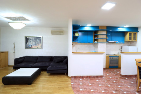 Apartments in Belgrade - Three-room apartment Lugi 1 is located in Dalmatinska Street, just a few minutes' walk from Republic Square. The apartment is located on the fifth floor of a residential building with an elevator. The fully equipped and comfortable apartment has two bedrooms, as well as a spacious living room with a large corner pull-out sofa, a modern kitchen that is part of the living room. The bathroom has a shower and a washing machine. When it comes to additional content, central heating, air conditioning, Wi-Fi, cable TV, LCD TV, as well as clean towels and bed linen are available to guests. Location is excellently connected to other parts of the city, near the station and a large number of city transport lines. An additional advantage of apartment Lugi 1 is that it has a garage space included in the rental price.