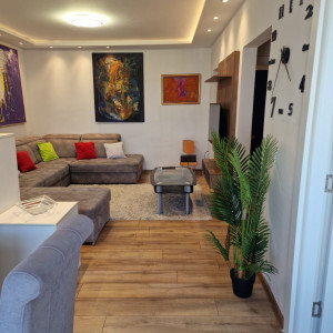 Apartment Milutin - New Belgrade. Three-room apartment of 67m2 is located in block 28, on the 14th floor of a residential building. It is located in the street: Bulevar Milutina Milankovića 122. It is intended for 4 people. The apartment has two bedrooms, one of which has a double bed intended for two people, while the second bedroom has a single bed for one person. The three-room apartment has a nice and bright living room with a large corner sofa that can also be folded out and is suitable for sleeping. The living room also has an exit to a beautiful terrace with a beautiful panoramic view of the entire city. In the continuation of the apartment, there is a fully equipped kitchen with induction hob, oven and combined refrigerator. The kitchen is completely new and has all the necessary utensils and appliances. In addition, the apartment had a bathroom with a shower and a washing machine. Free WiFi internet, three TVs with cable channels, clean towels and clean bed linen, air conditioning and central heating are available to guests. An additional benefit is that Milutin apartment is pet friendly and your pets are welcome. For all those who come with their own vehicle, they can park their car in the vicinity of the building, there is always a parking lot. Welcome!