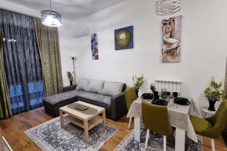 Alek Place 3 is a two-room apartment in New Belgrade, at Tošin bunar 270v. It is located in the New Minel complex on the first floor (the building has an elevator), in the same location there are two more apartments on offer. The apartment is fully and modernly equipped for a pleasant stay for 3 people. It consists of a living room, kitchen, bedroom, bathroom and terrace. Wi-Fi, TV, cable TV, air conditioning, central heating, bed linen, towels are provided. The location of the apartment itself is excellent, in the immediate vicinity there are Immocentar, Airport City, restaurant Bela Reka, Lidl. It has excellent connections with other parts of the city. If you come by car, there is a free parking space in the building.