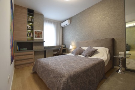 Apartments Belgrade - Apartment Angelina Blok A is located in Jurija Gagarina Street, New Belgrade. Modernly furnished apartment in new building spreads on 50 m2 and can accommodate up to 4 people. It is located on the ninth floor of an apartment building with an elevator and is completely new. The apartment consists of living room, kitchen separated by bar from living room, comfortable bedroom, bathroom and terraces oriented to the interior of the complex. In the bedroom there is a French bed, and the suite in the living room is folded into a comfortable bed for two people. The kitchen is modernly equipped with all necessary appliances for both shorter and longer stay. The bathroom has a shower and modern sanitary facilities. From the living room comes out on the terrace that offers a view of the new and modern A block. From the accompanying content, the apartment daily has Wifi, KTV, LCD TV, air conditioning, hairdryer, central heating, bedding and towels. The Block A complex contains everything you need for a comfortable life: numerous restaurants, trade markets, kindergartens and schools in the immediate vicinity, as well as Delta City Mall. The location is perfectly connected to all parts of the city. If you come with your own car at your disposal a private garage is available and the surcharge is 5e day. The apartment can be rented for a minimum of three days.