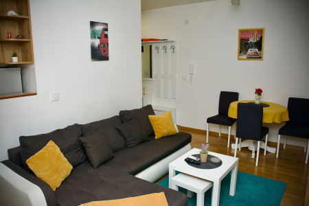 The two-room apartment Apple is located in Kapetanovićeva Street 6, on the second floor of the building. The apartment is located not far from Nikola Tesla Airport. Pleasant ambience and modern design. It has an area of 35 m2. It consists of a living room connected to the kitchen, a bedroom with a TV and a terrace. It is ideal for a stay of up to 2 people. The apartment is fully equipped and has everything you need for a short or long stay in the apartment. Wifi and TV with over 200 channels are available to guests. It is located in a quiet part of the village and has a parking space.
