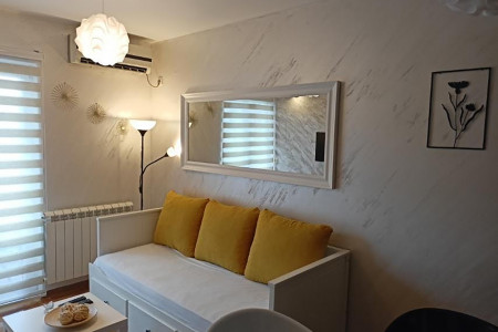 Two bedroom apartment Cadiz 2 is spread over 35 square meters. It is located in Poručnika Spasića i Mašere Street on the first floor of the building. Ideal accommodation for 3 people. It consists of a living room with furniture, below is a fully equipped kitchen with dining table and chairs. The kitchen has a refrigerator, stove and all necessary utensils and dishes. The separate bedroom is equipped with a large double bed and a wardrobe. An additional benefit is the terrace that the apartment has. From the accompanying content are available: air conditioning, TV, central heating, cable TV, washing machine, so this accommodation is a great choice if you come for a long time because it has all the necessary elements for a pleasant stay. Guests also have free parking in front of the building.
