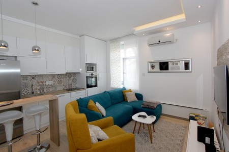Apartment in Zvezdara- Apartment Dijamant is located nearby Monument of Vuk, on the ground floor of the building that has 2 floors all together. It is located in very peaceful and quiet Čelopačka street. Apartment is renovated and fully equipped with the most modern kitchen equipment and furniture. It is predicted for up to 2 persons. This accommodation consists of living room with comfortable bedding set and separated bedroom with built-in closet and double bed, bathroom with shower. Modernly equipped kitchen with a bar is the part of living room. Cable network, TV, air condition, heating (norwegian radiators), hair dryer, washing machine, clean bed sheets and towels are available to guests of this apartment. If you choose Dijamant apartment, you are not going to be disappointed, for sure!