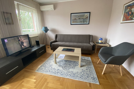 Capri Apartment is located in New Belgrade on Bezanija Kosa in a newer building. Capri is a two-room apartment of 45 m2 intended for a stay of up to 4 people. It is fully equipped for a long stay. It is located on the first floor. It has a large double bed in the bedroom, and in the living room there is a folding sofa and an armchair. The kitchen is fully equipped to make you feel at home. The apartment is equipped with LCD TV, WIFI, cable TV, central heating and air conditioning. Parking is free in front of the building. The apartment is perfect for guests who want to spend time in a modern and urban environment because there are several cafes, pizzerias, bakeries, Maxi 24/7 just a few meters away. If you come with your own transport, you can park for free in front of the building.