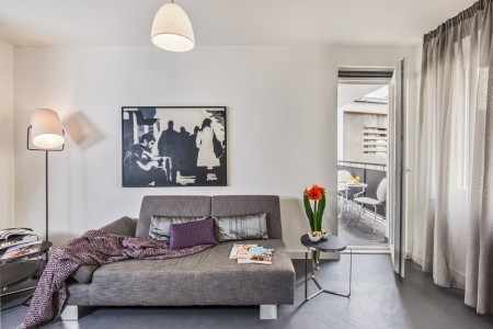 Apartments Belgrade - Apartment on Rakoc A10 is located in the very center of Belgrade, in the quiet street of Marshal Birjuzov, just a few steps from Knez Mihailova Street! It is located on the third floor of the building with an elevator and can accommodate up to 3 people. The apartment is spread over 60 m2 and consists of a living room with kitchen and dining room. In the living room there is a ottoman which is intended for one person. The kitchen is fully equipped with all necessary for shorter and longer stays. In the bedroom there is a large double bed with a width of 160 cm and from the bedroom and from the living room there is an exit to the terrace from which you can enjoy the view of the park in front. The bathroom is equipped with a shower cubicle and modern bathrooms.