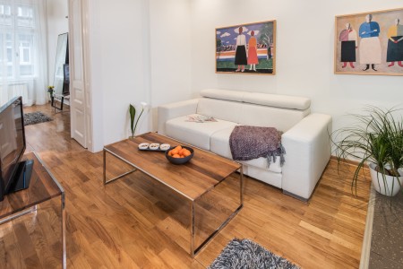 Apartments in Belgrade - Apartment on the day Rakoc A12 is located in the city center, in the Cara Lazara Street just steps away from Knez Mihailova street. Apartment is situated on the first floor if a residential building without an elevator and it is arranged for a pleasant stay of up to 3 persons. Apartment Rakoc A12 is very comfortable and consists a spacious living room with a two-seater pull out sofa that can be turned into a comfortable bed for one person, fully equipped kitchen and dining area are in the extension of the living room, than a separate bedroom with a double bed (160 cm width),LCD TV and a closet. Bathroom is reached from the bedroom, it is modernly designed and in addition to the basic sanitary equipped with a shower cabin. Additional content of the apartment includes central heating, air condition, WiFi, LCD TV cafe-mat, washing machine, clean linen and towels. If you are arriving by your own vehicle, parking is available in the closed yard with an extra charge of 10 euro per day. Welcome!
